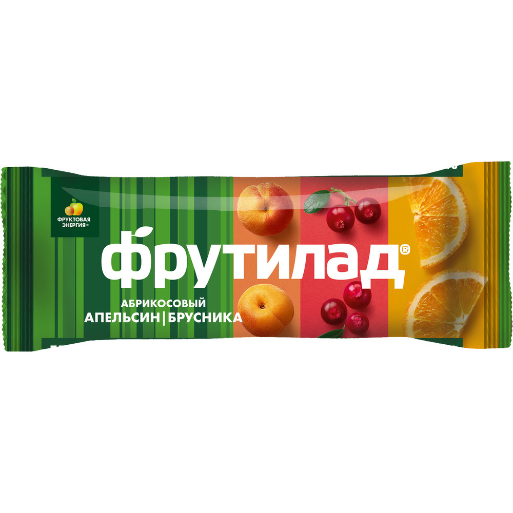 Фруктовый батончик из кураги с добавлением с ягод брусники и сока спелых апельсинов.
