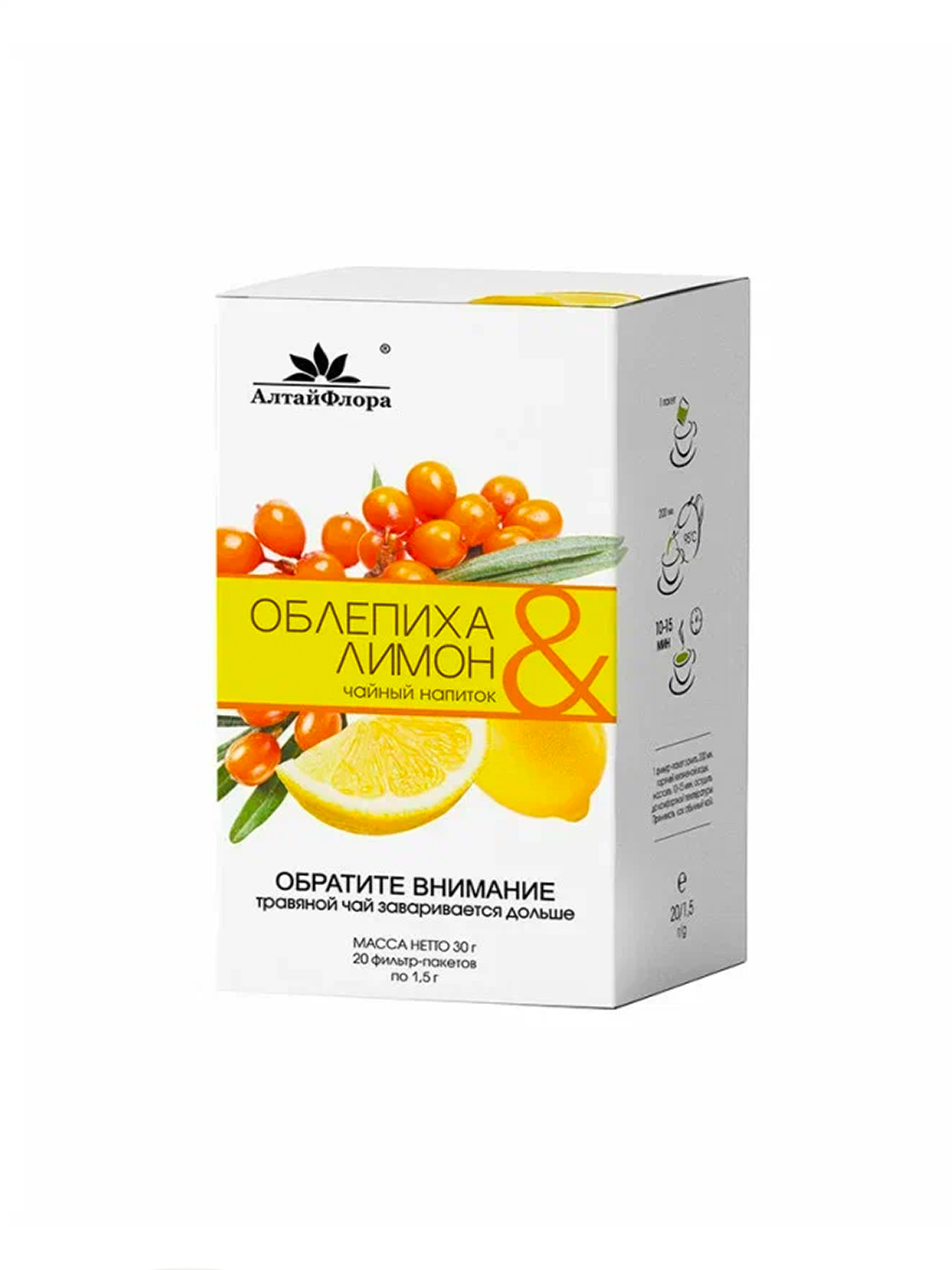 Облепиха плоды, лист, шиповник, левзея, цедра лимона, каркадэ, мята.