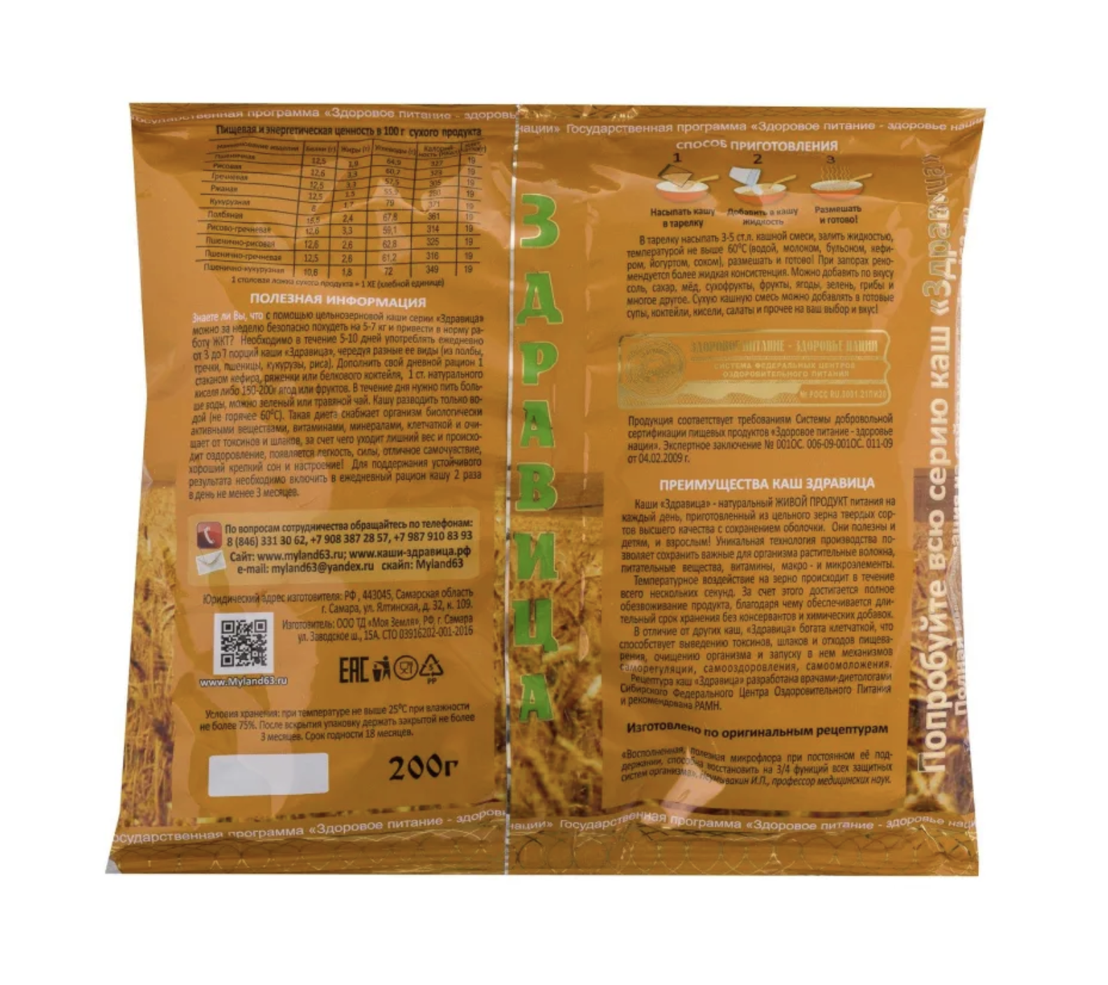 Рецептура каш Здравица разработана врачами-диетологами Сибирского Федерального Центра Оздоровительного Питания и рекомендована РАМН.