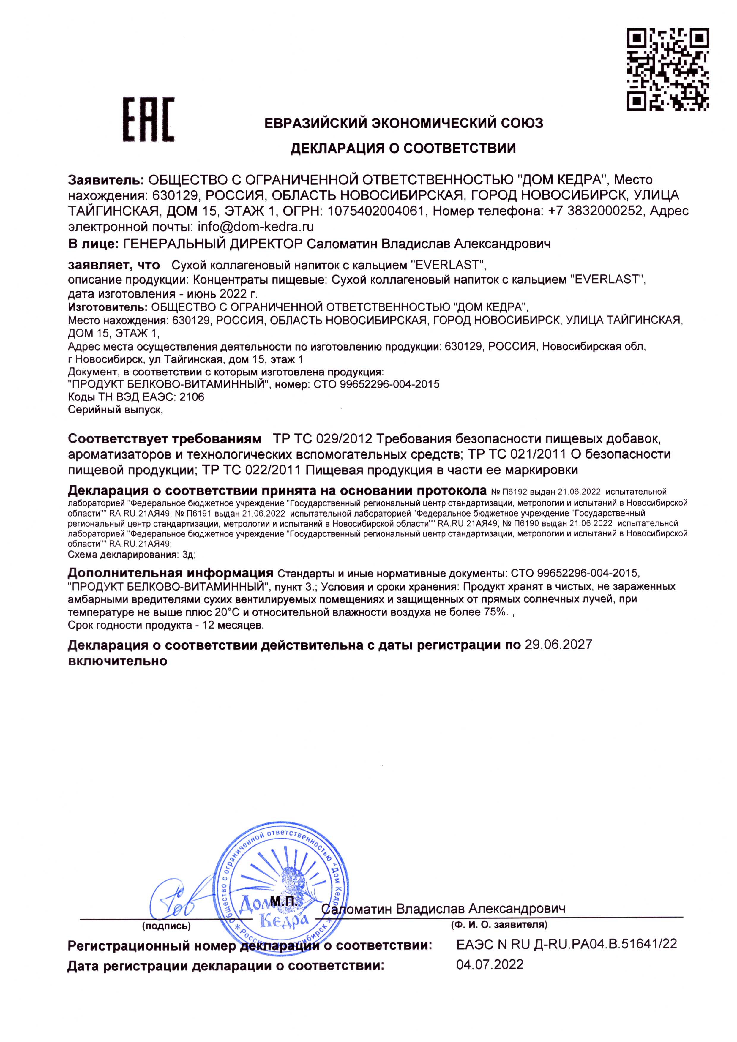 EVERLAST сбалансированно сочетает в себе качественный и легкоусвояемый гидролизированный белок коллагена животного и морского происхождения, жмыха кунжута, необходимые организму пищевые волокна красной свёклы, антиоксиданты клюквы и шиповника, а также витамины и минералы.