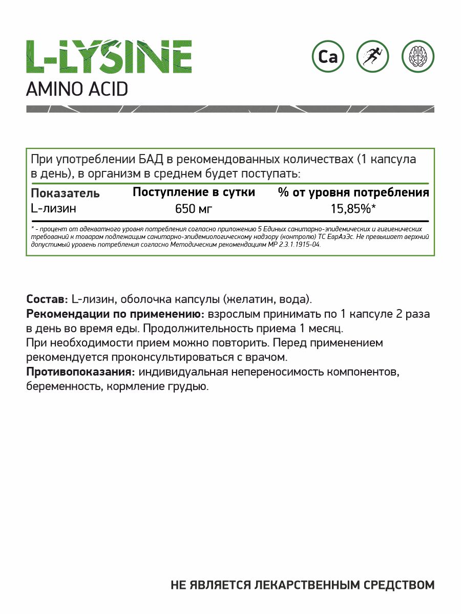 Незаменимая аминокислота, обладающая широким спектром биологических эффектов: как составляющая белков организма, способствует усвоению кальция, синтезу коллагена, выработке антител и др.