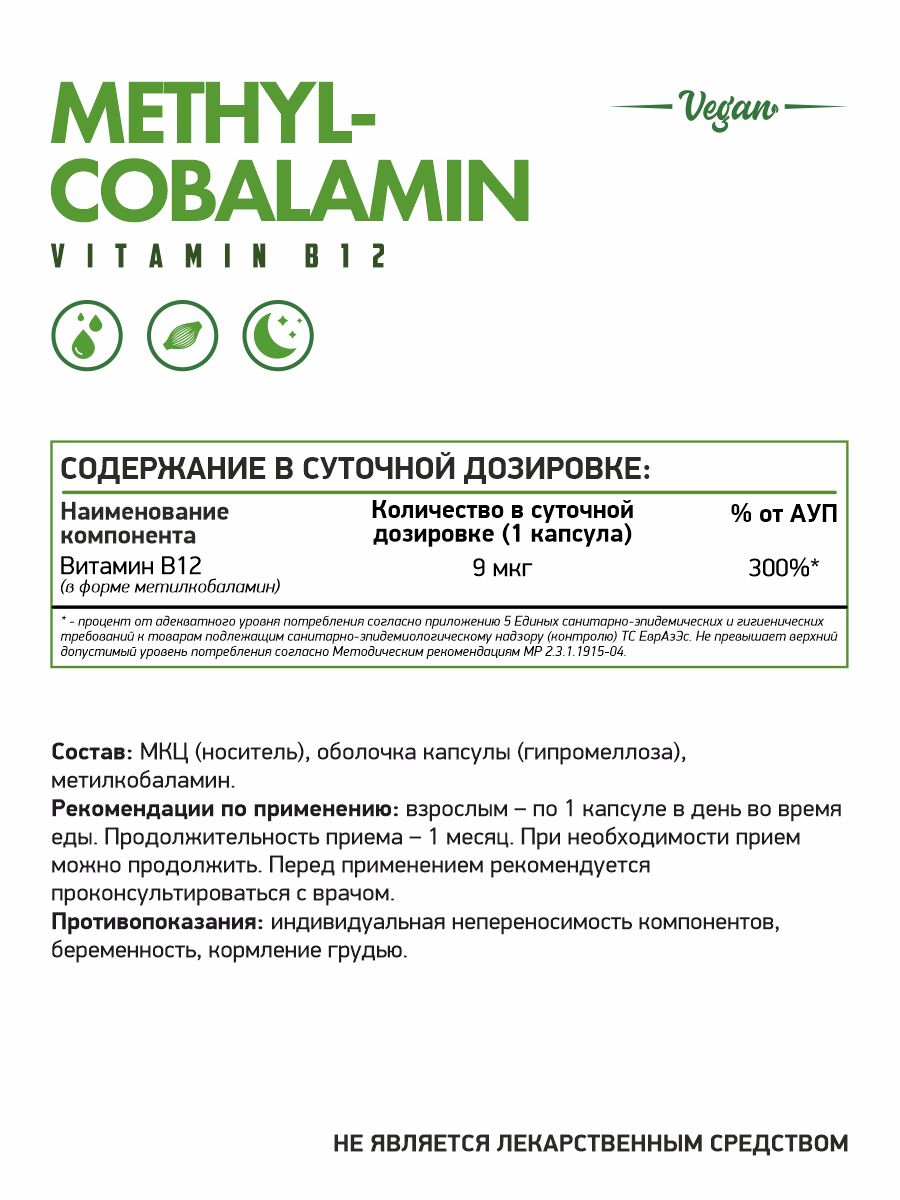 Микрокристаллическая целлюлоза (носитель), оболочка капсулы, метилкобаламин.