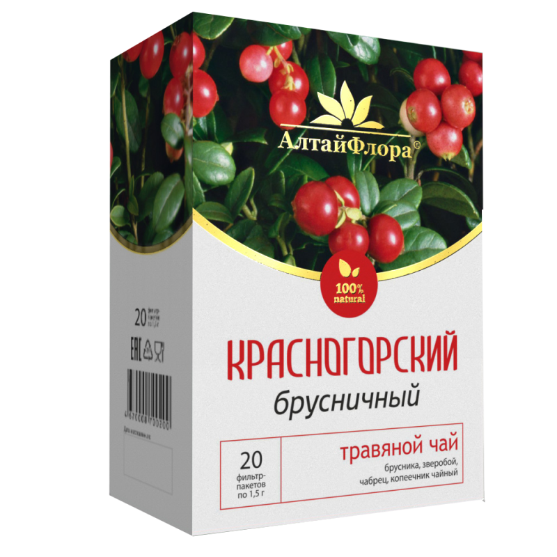 Один из наиболее распространенных рецептов алтайского края. Состав приготовлен на основе плодов и листьев брусники. Данное растение известно как средство для быстрого восстановления сил. Чай содержит чабрец (снимает спазм), зверобой (эффективный антистресс) и сабельник (облегчает простудные симптомы).