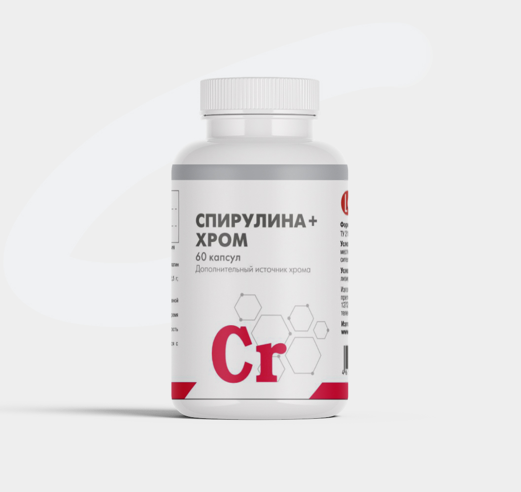 Природный растительный комплекс микроводоросли спирулины и хрома. Биологическое соединение хрома со спирулиной является уникальным по усвояемости, безвредности и биодоступности.