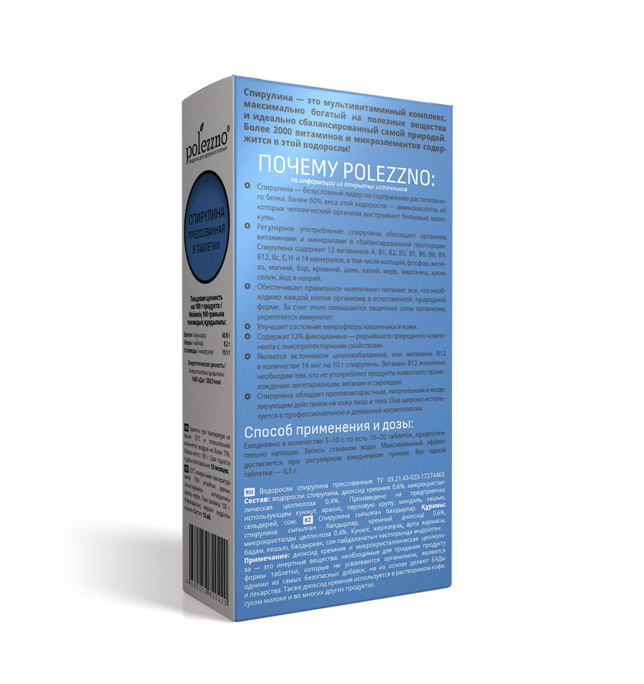 Спирулина — это мультивитаминный комплекс, максимально богатый полезными веществами и идеально сбалансированный самой природой. Более 2000 витаминов и микроэлементов содержится в этой водоросли! Недаром организация Объединенных Наций еще в 70-е годы назвала спирулину «пищей будущего».