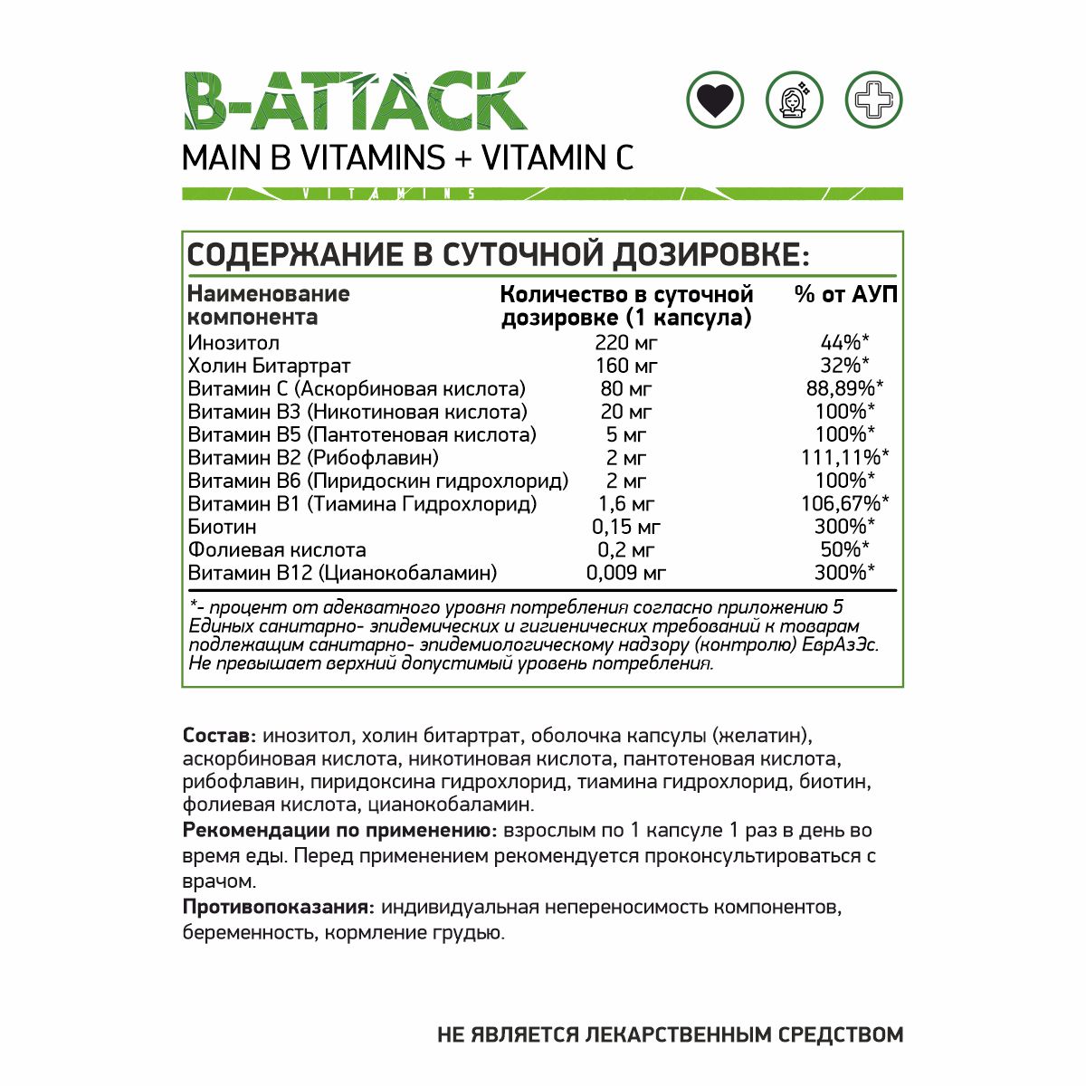В комплекс B-Attack входят 5 незаменимых витаминов группы В: