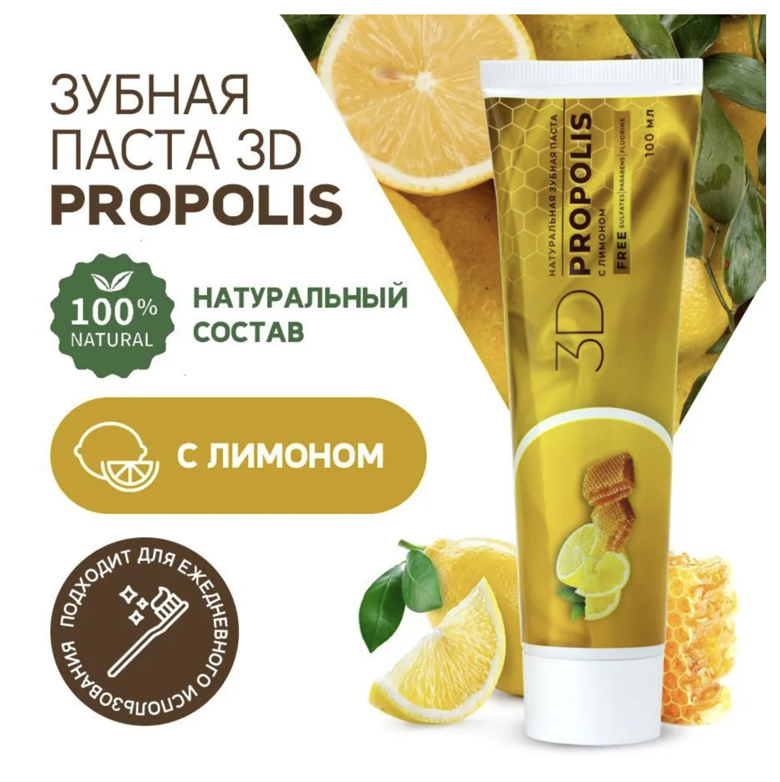 Зубная паста «3D PROPOLIS» предназначена для комплексного ухода за полостью рта. Натуральные природные компоненты способствуют уменьшению кровоточивости и отечности десен, заживлению слизистой полости рта, обеспечивают профилактику кариеса.