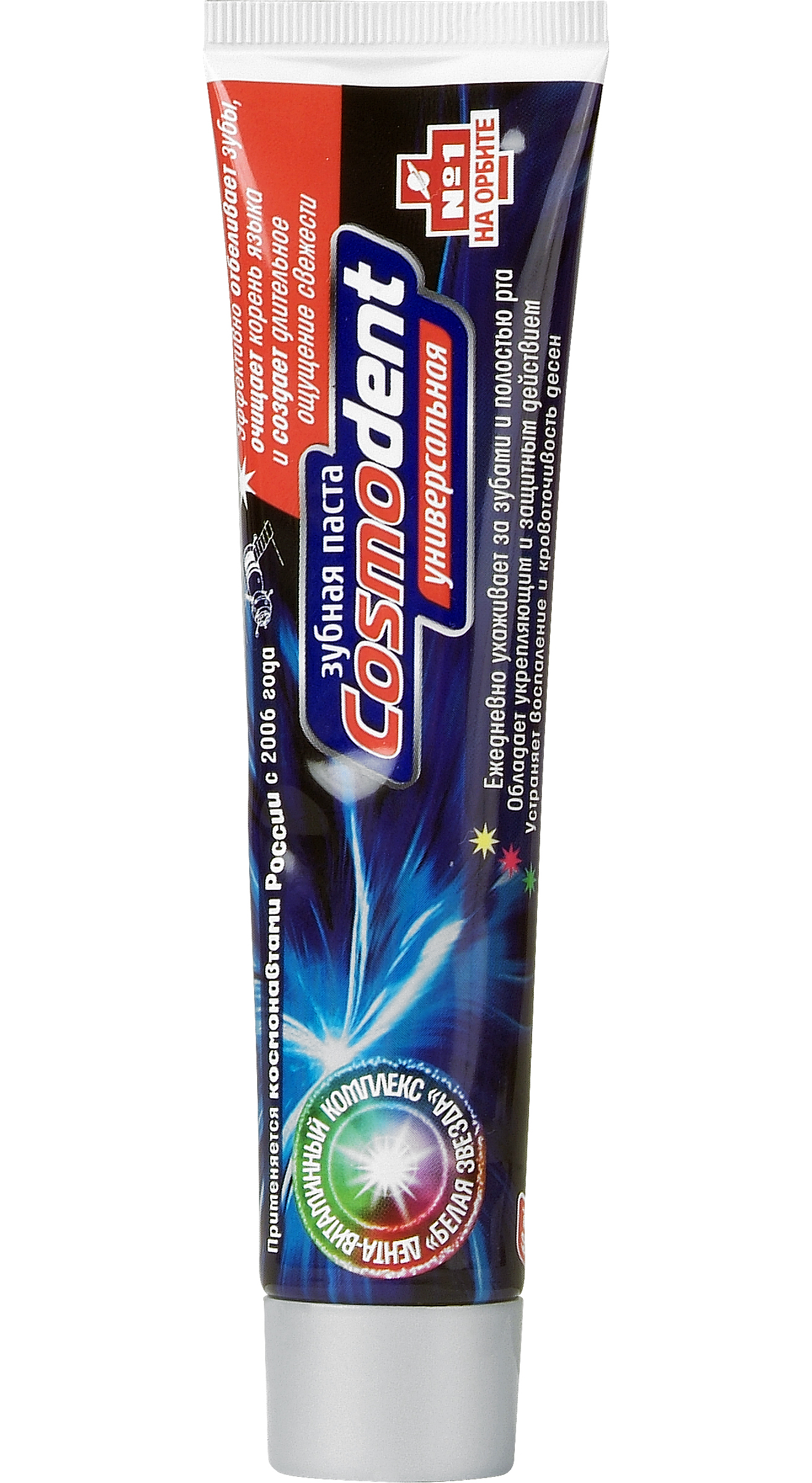 Дента-витаминный комплекс «Alba Aethra» («Белая Звезда»), созданный специально для паст серии «Космодент», содержит необходимые витамины (А, В, С, Е,РР) и активные ферменты (лизоцим и пероксидазу), которые расщепляют патогенные микроорганизмы и препятствуют возникновению кариеса.